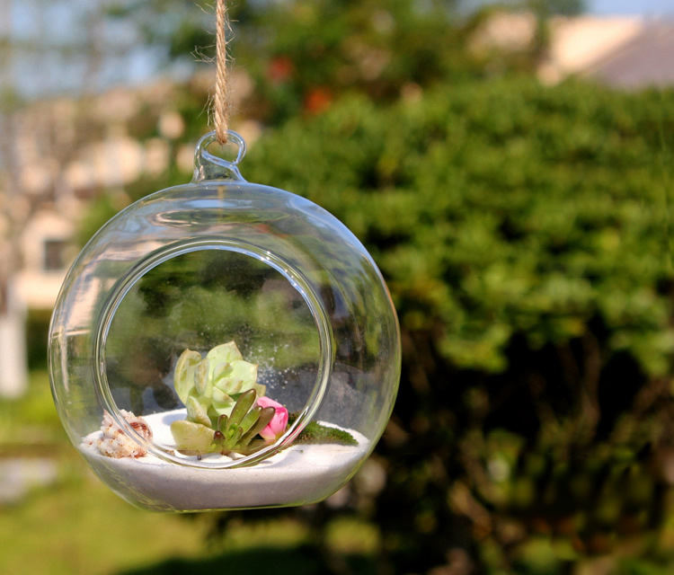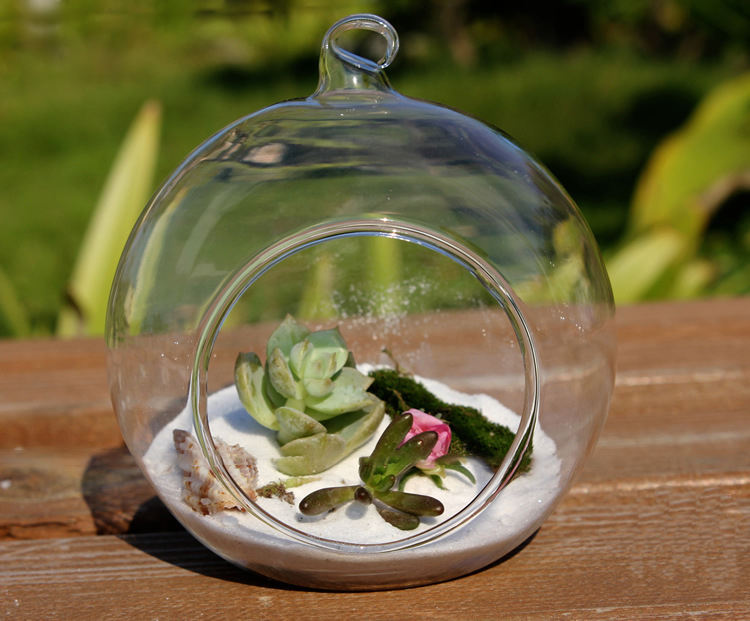 Cheap Wholesale Open Flower Glass Hanging Planter Air Plant Glass Ball Terrarium Container Vase