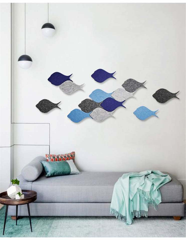 Cheap Wholesale Price Fish Shape Sound Absorbing Acoustic Panel Self Adhesive Felt Pin Board Sticker