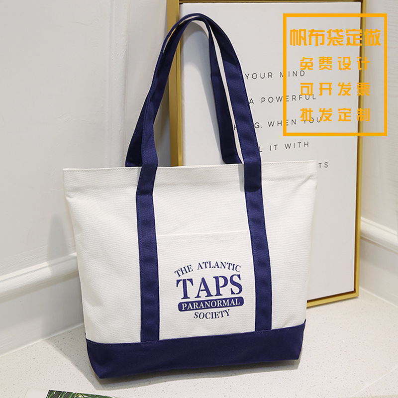 Cheap Wholesale Splicing Custom Logo Canvas Multiple Colors Large Capacity Pocket Shopping Tote Bag