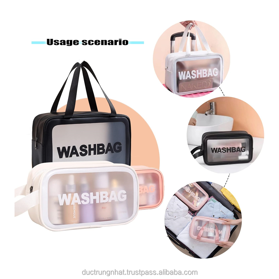 Cheap Wholesale Washbag Cosmetic Bag PVC Transparent Travel Pouch Toiletry Pink Cosmetic Bags From Vietnam Manufacturer