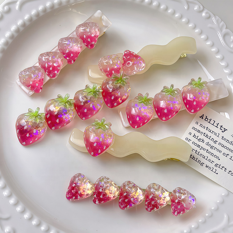 Cheap and Sweet Strawberry Acetate 6.5*2 cm Hair Clips Duckbill Clip Side Clip Hairpin for Kids