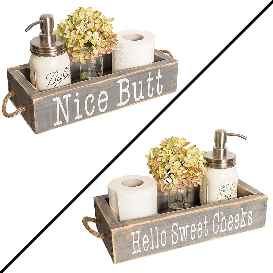 Cheap custom logo wooden box rectangular bathroom storage boxes toilet paper holder storage basket