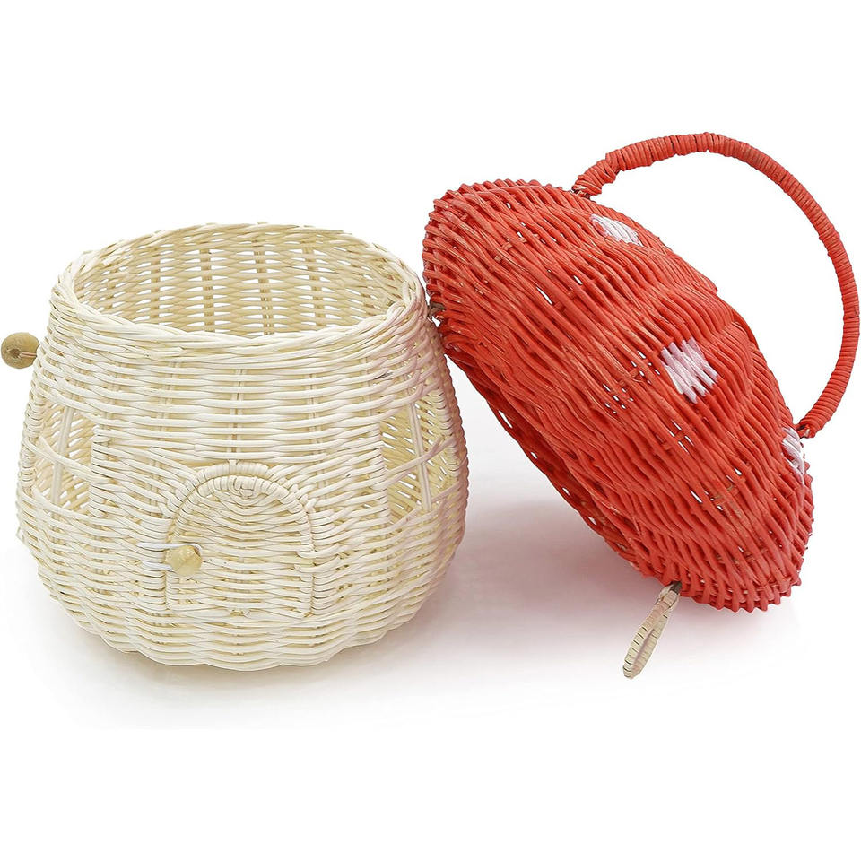 Toddler handbags red rattan mushroom basket toys handmade kids toy wicker mushroom handbag baskets