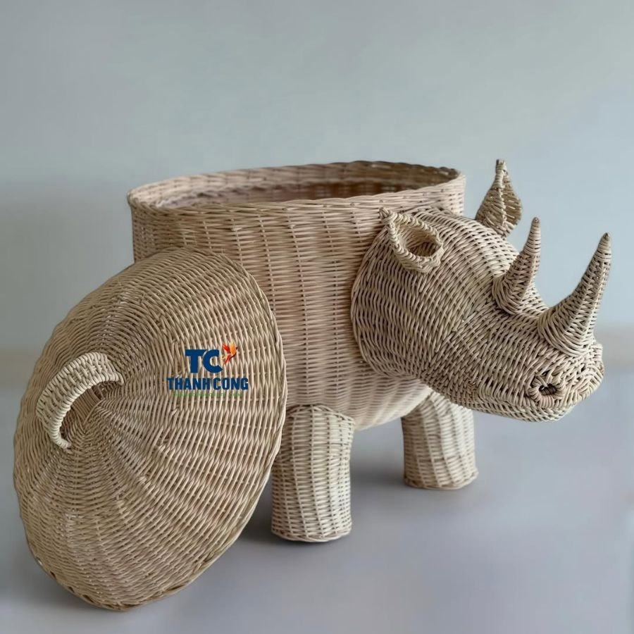 Cheapest Price Natural RATTAN RHINOCEROS BASKET With Top Unique Animal Shaped Storage Bin For Baby Nursery Decor Vietnam Factory