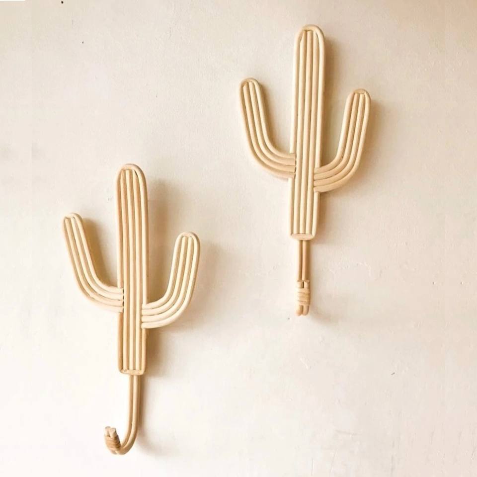 Cheapest Price Cactus Shaped Wall Mounted Hook Rattan Wall Hanging Hooks Wholesale From Vietnam Factory