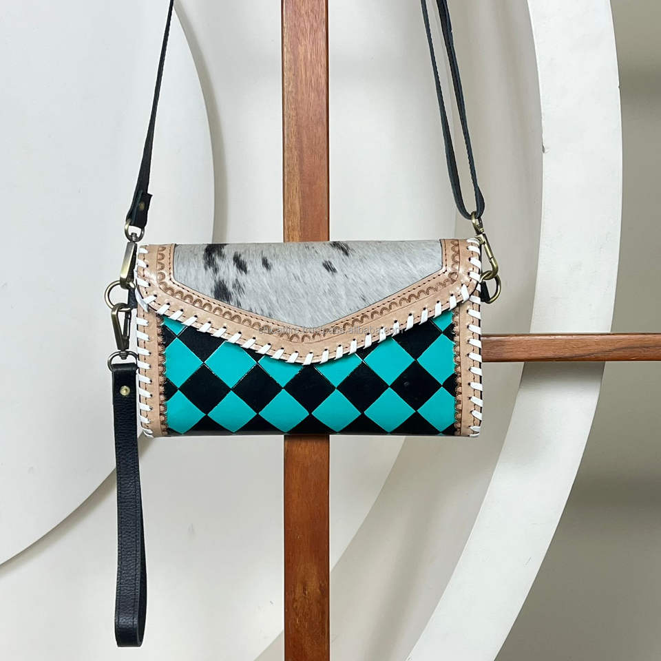 Hand Tooled Checkered Leather Crossbody Mini Bag