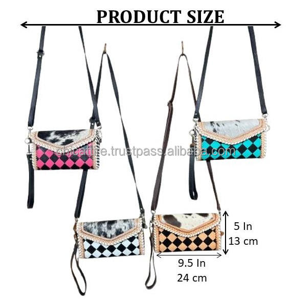 Checker-Pattern Cowhide Crossbody Clutch Multi-Compartment Sling Bag for Daily Use Hand Tooled Leather Wristlet Handbag Purse