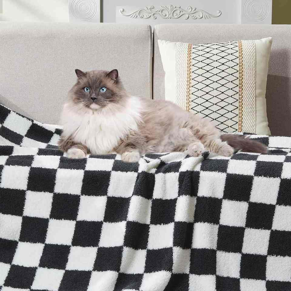 Checkered Flannel Fleece Throw Blanket Soft Cozy Checkerboard Grid Print Chessboard Gingham Pattern Blankets for Bed Couch Sofa