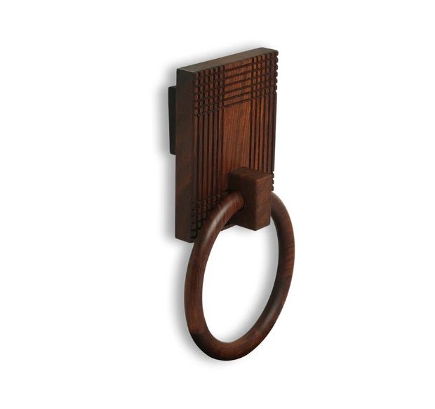 Checkered Frame Handcrafted Towel Ring Holder HandPainted Standard Wall Mount Towel Rack Hanger for Kitchen Wooden Hand Rack