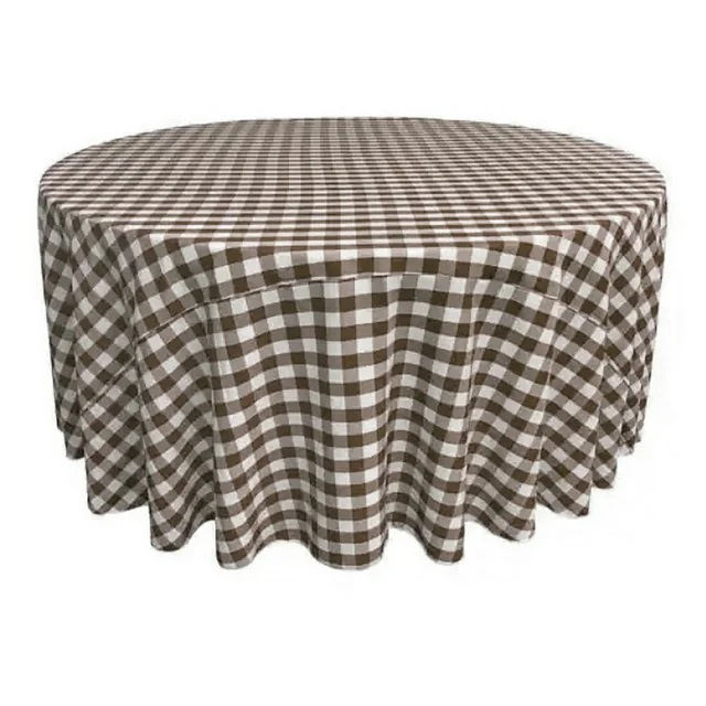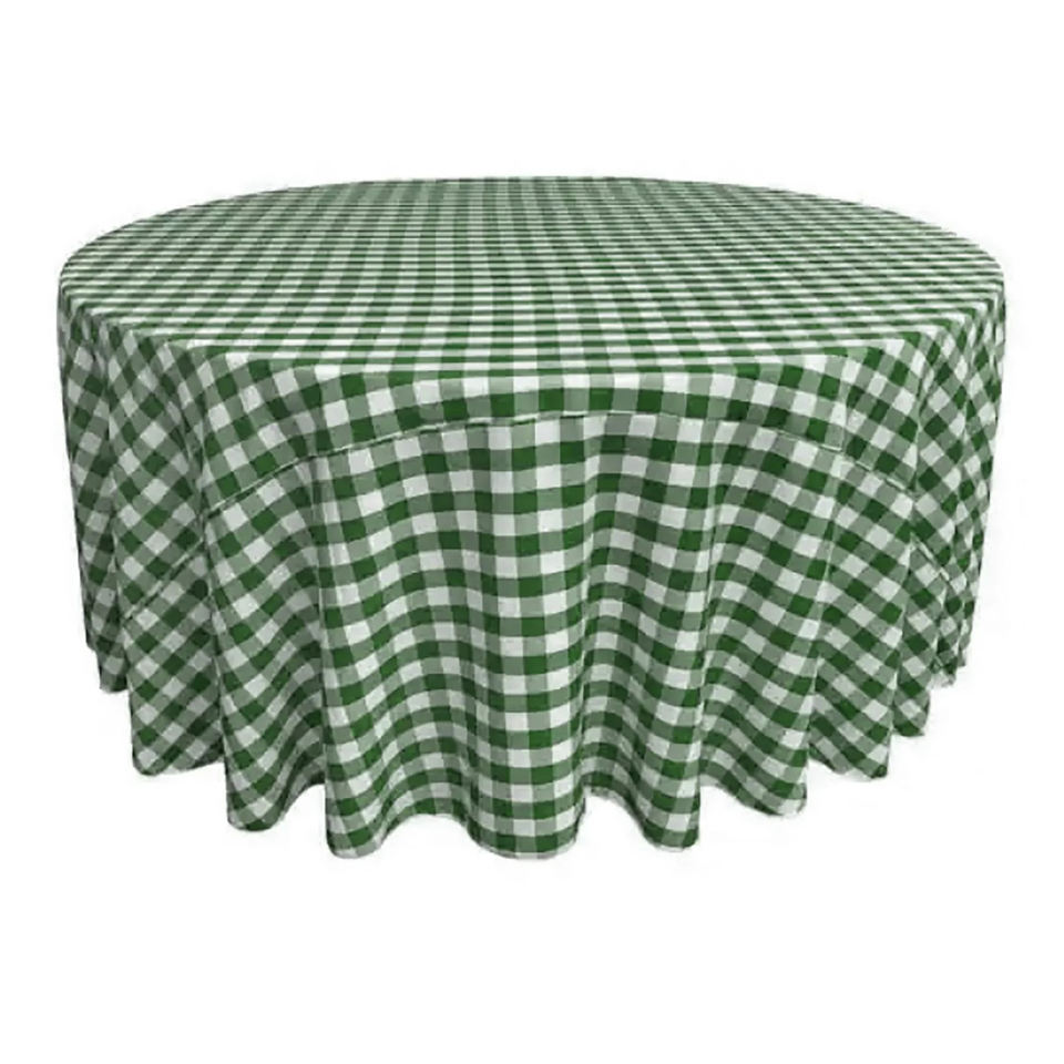 Checkered Round Washable Christmas Plaid Table Cloth Tassel Cotton Linen Gingham Green and White Tablecloth