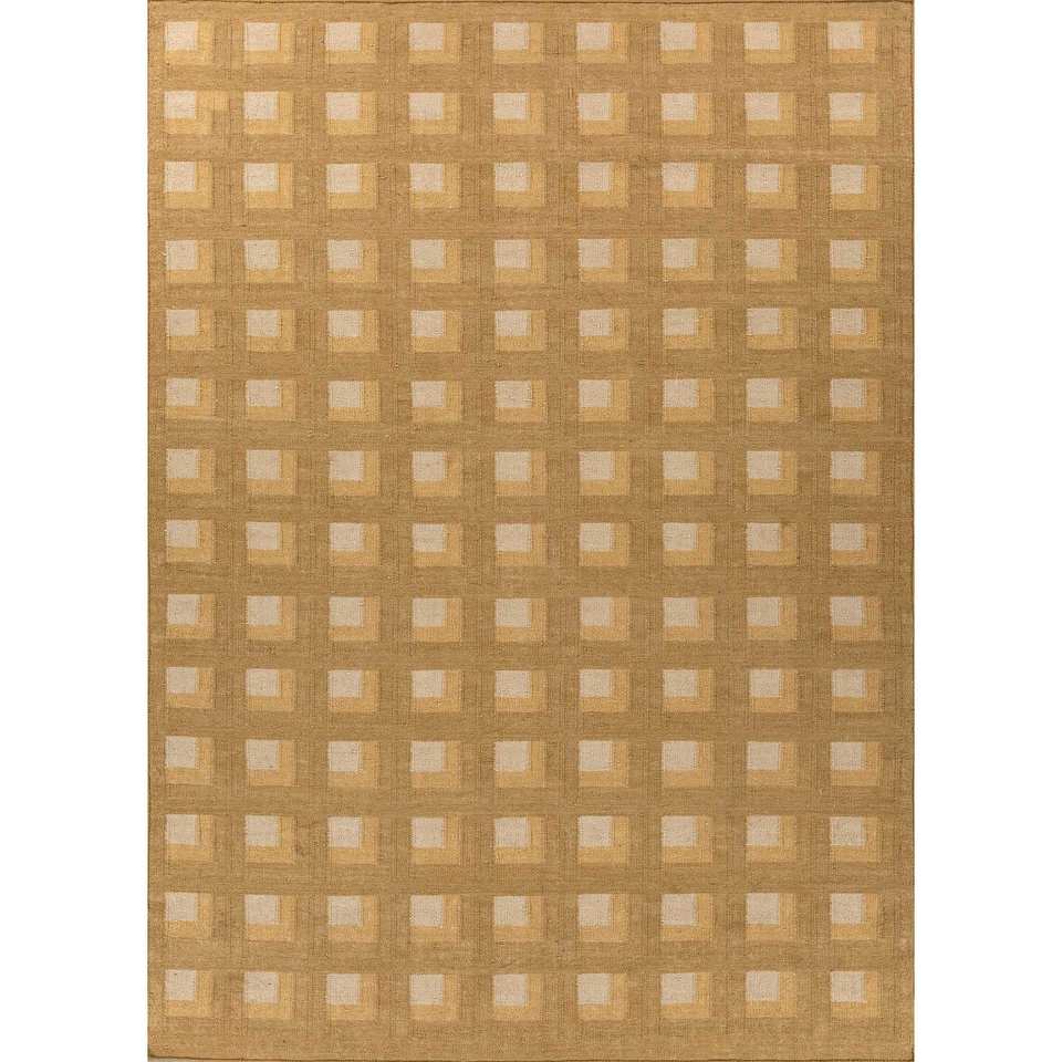 Checkers Gold Flat Weaves Wool Rug Handmade Boho Geometric Rectangle 9x12 for Bedroom Bed High Quality ADWL-13024