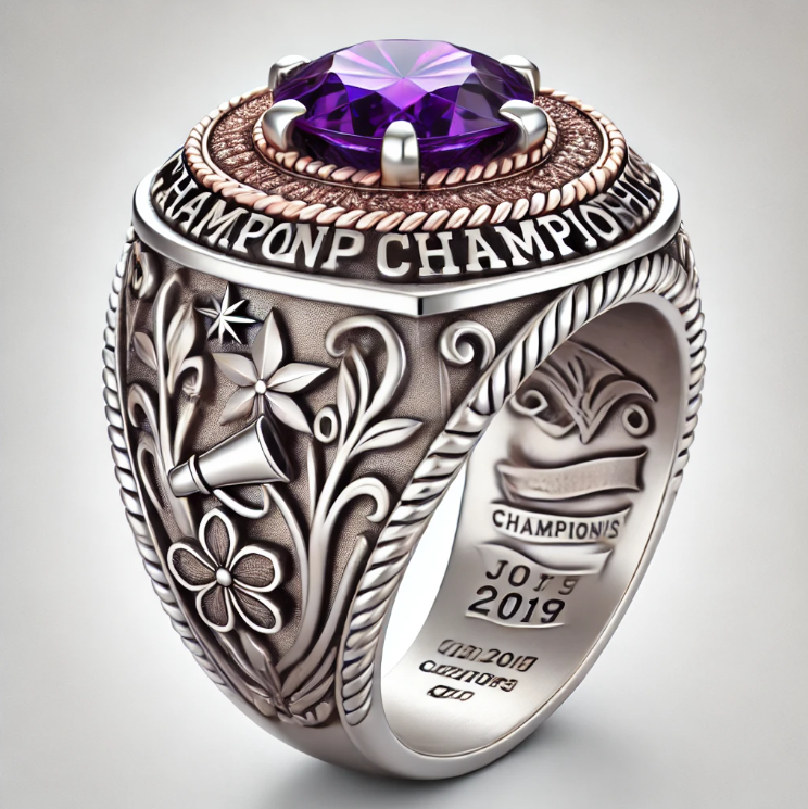Cheerleading Champion Rhodium Plated Sterling Silver Rings with AAAAA Cubic Zirconia in Pave Setting