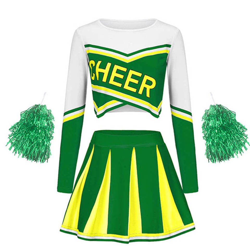 Cheerleading Outfit Cheer Uniform Outfit Cutout Crop Top with Pleated Skirt Flower Balls