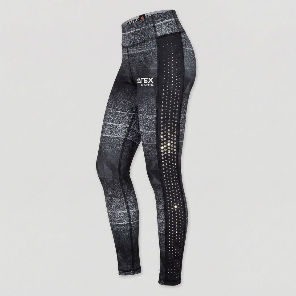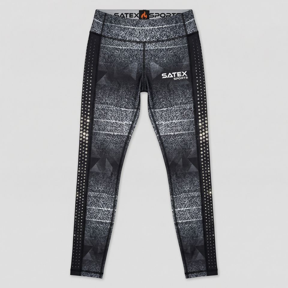 Cheerleading Solid Breathable Women Yoga Side Panel Rhinestone Leggings Shiny High Waist Four-Way Stretch Gym Wear Sublimated