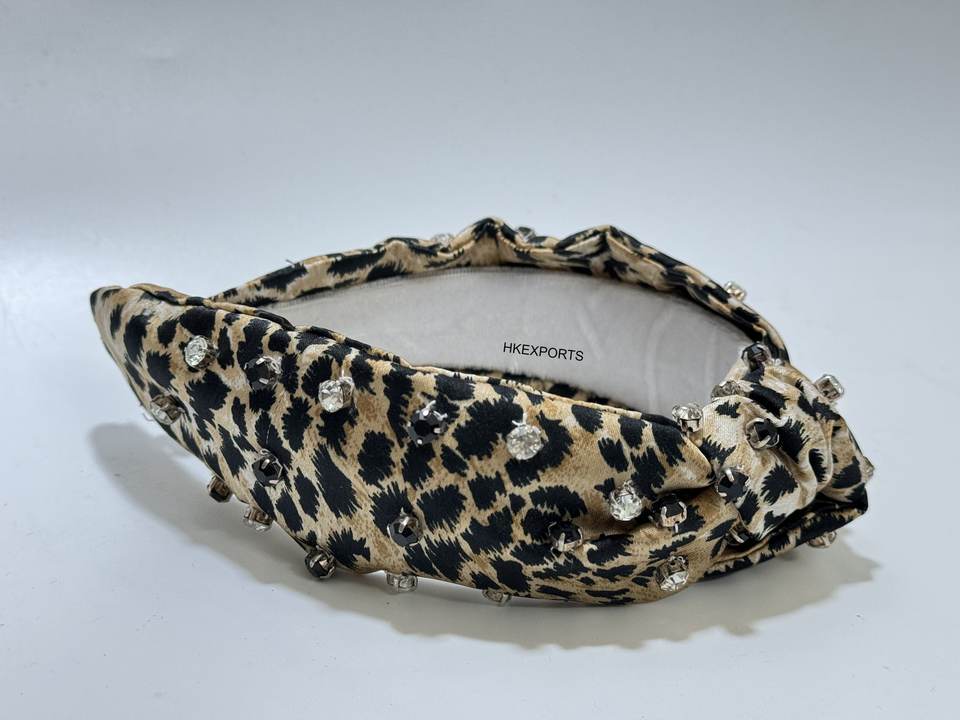 Cheetah Print Beaded Fabric Headband Wild Style Hairband for Boutique Use
