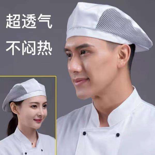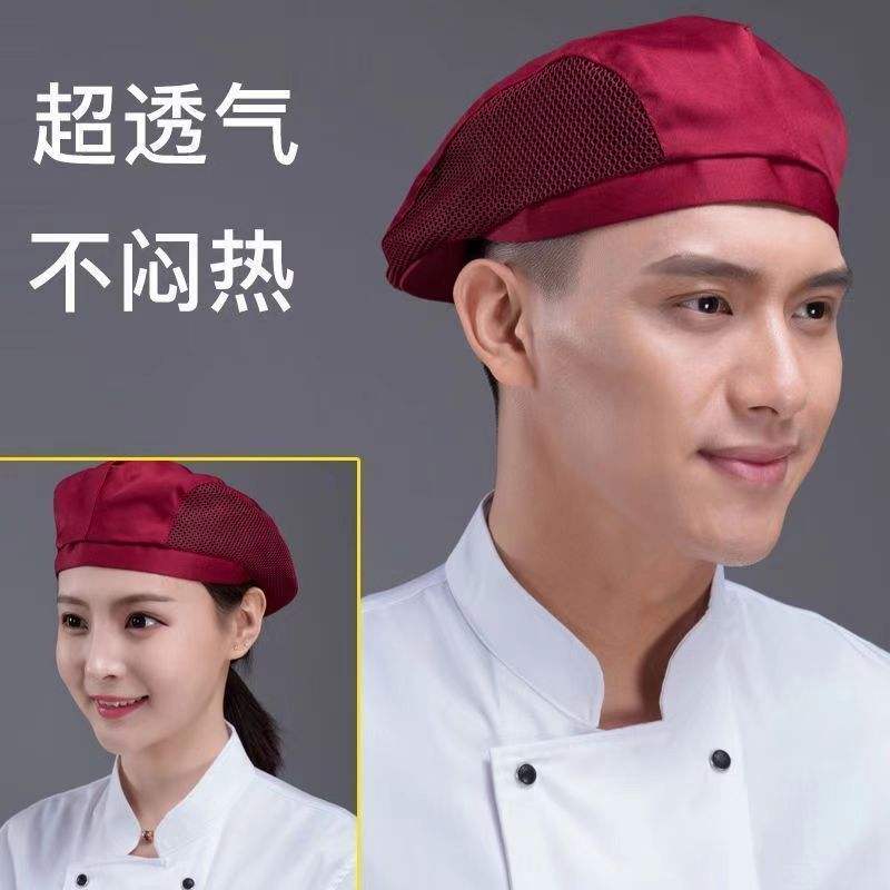 Chef Work Cap Half Mesh Front Solid Color Breathable Kitchen Uniform Hat Adult Beret Protective Flat Top Cap