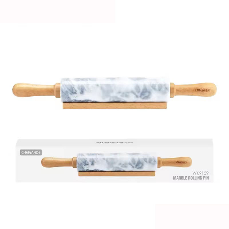Chefmade WK9159 High Quality Marble Rolling Pin with Wooden Handle for Baking and Cake Pans Handicraft Stone Rolling Pin
