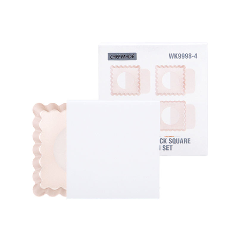 Chefmade WK9998-4 4inch Quiche Pan 4pc Set Carbon Steel Square Non-Stick Tart Pans with Removable Bottom, Tart Molds for Baking