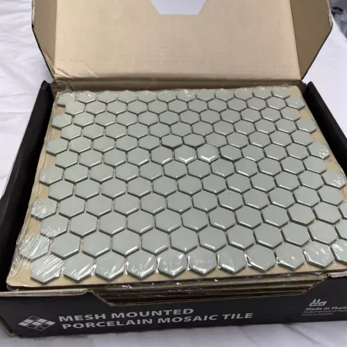 Chelsea Glossy Mint Ceramic Mesh-Mount Mosaic Wall Tile Hex Shape 5mm Polished Tiles for Interior 10-Pk for Room Firebrick