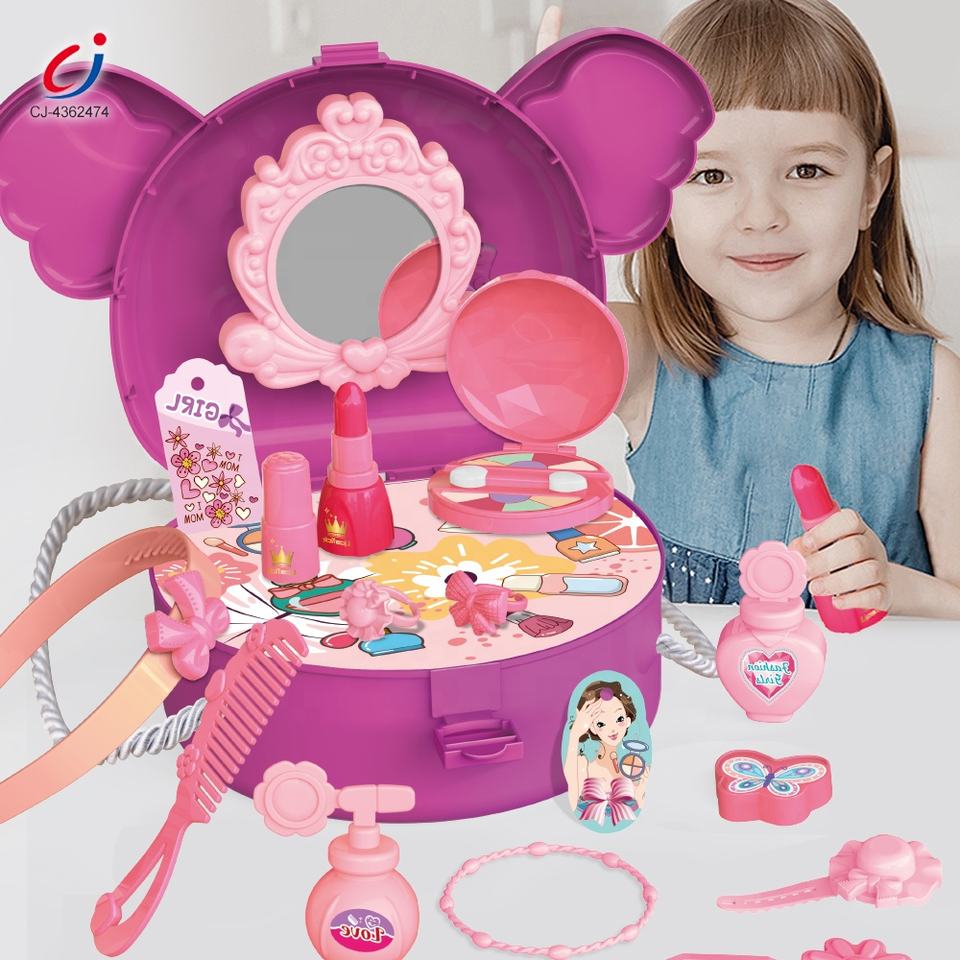 Chengji Pretend Play Makeup Kit Girls Beauty Cosmetic Dressing Shoulder Bag Pretend Makeup Toy for Toddlers