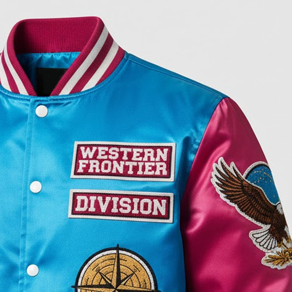 Product Name:Men Chenille Embroidery Satin Varsity Jacket