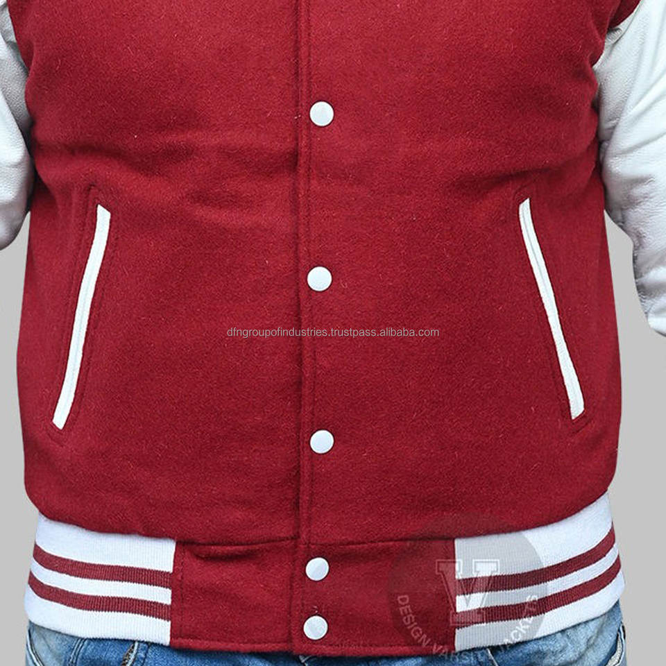 Chenille Letter Embroidery Patches Custom Logo College Leather Sleeve Red Wool Varsity Baseball White Letterman Jacket Man