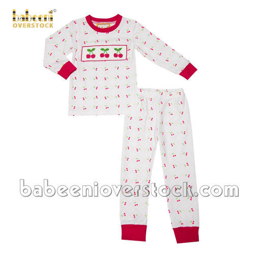 Cherry Appliqued Baby Boy Lougnewear Pajamas Spring Breathable Comfortable Soft Knitted 100% Cotton OEKO-TEX Certified Flame