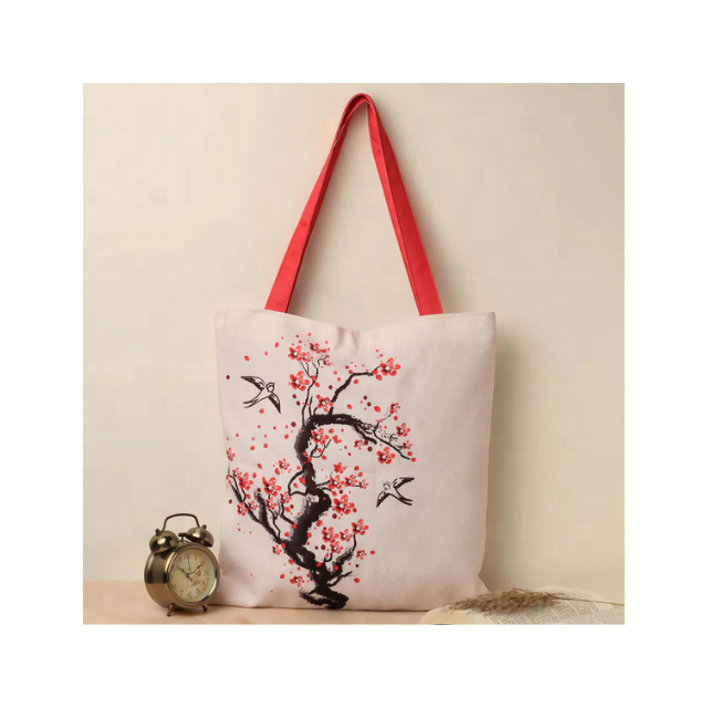 Cherry Blossom Quickdry Recyclable Handmade 100% Cotton Indian Embroidered Tote Bag Sustainable Lightweight Wholesale Durable