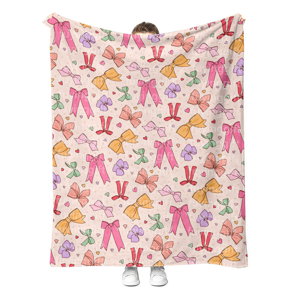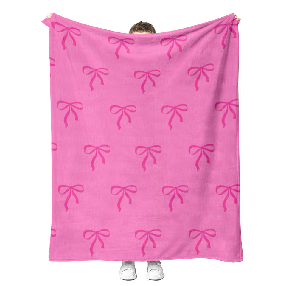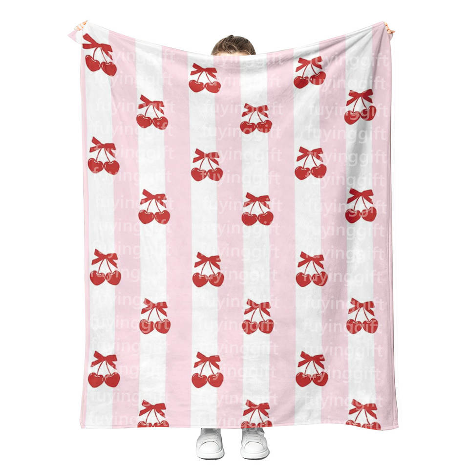 Cherry Bow Blanket Lovely Girly Home Decoration Soft Cozy Fuzzy Wearable Plush Sherpa Fleece Adult and Kids Custom Blankets