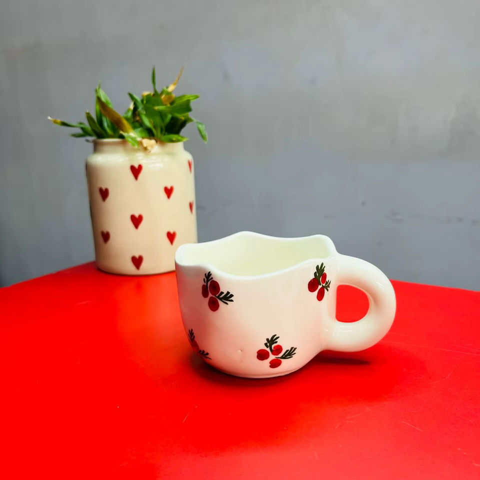 Cherry Printed Ceramic Mug 300 ml Handmade Coffee Cup for Girls & Women Microwave Safe Gift for Birthday Valentine Anniversary