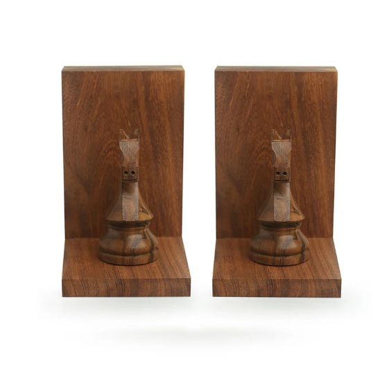 Chess Horse Handcarved Book Ends In Sheesham Wood Decorative Chess Bookends for Shelves Bookend 2pack Sturdy Wooden Organizer