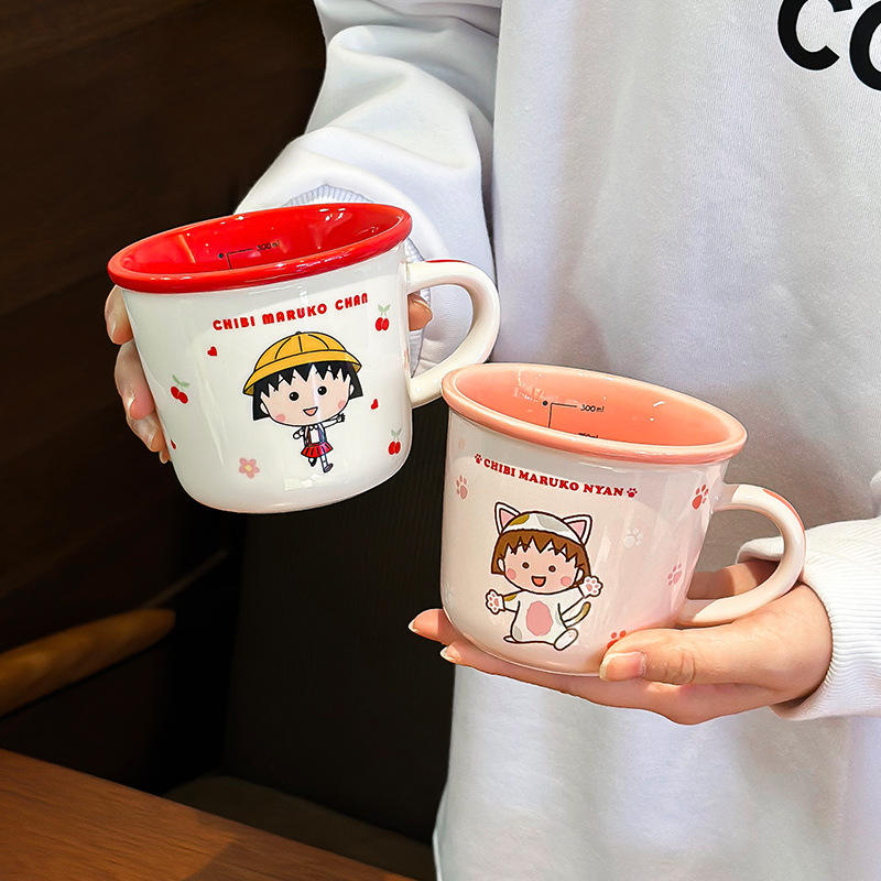 Chibi Maruko Chan Ceramic Mug With Handle Red Pink Yellow Cartoon Design For Girls Gift Spring 2025