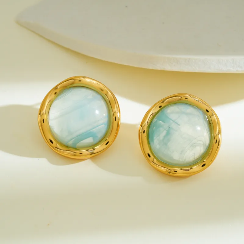 Chic 18K Gold Plated 304 Stainless Steel Round Resin Earrings Casual Simple Style For Women Daily Wear Boutique Jewelry & Gifts
