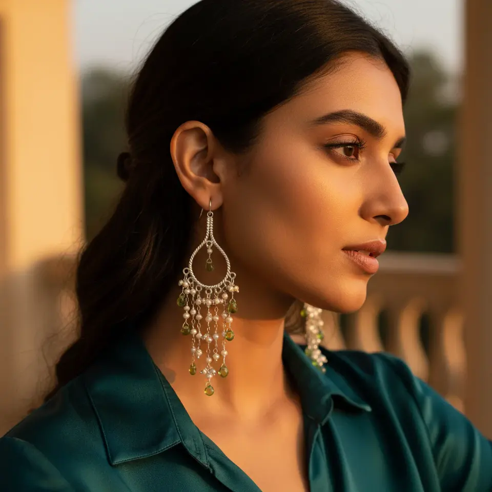 "Chic 925 Silver Pearl & Peridot Fashion Chandelier Earrings for Women"