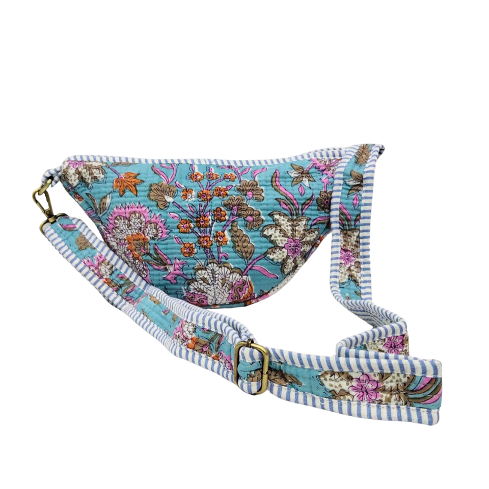 Chic Block Print Floral Crossbody Bag - Blue & Pink sustainable Sling Purse
