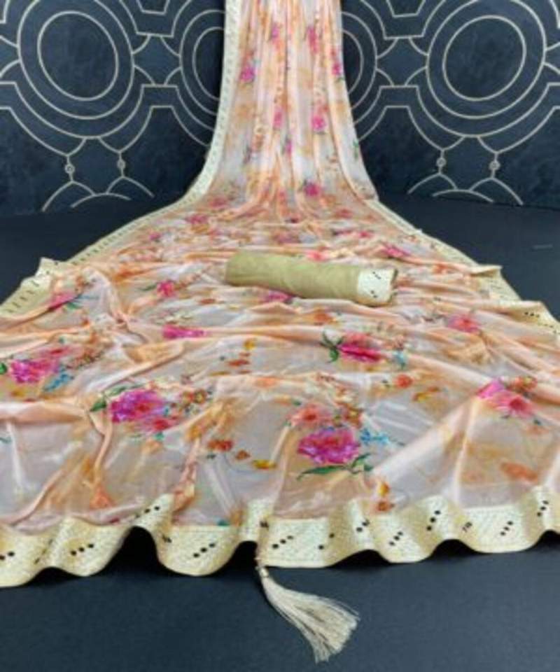 Chic Bollywood Floral Georgette Sarees Exquisite Designs with Delicate Flower Prints for Weddings Made From Net Fabric