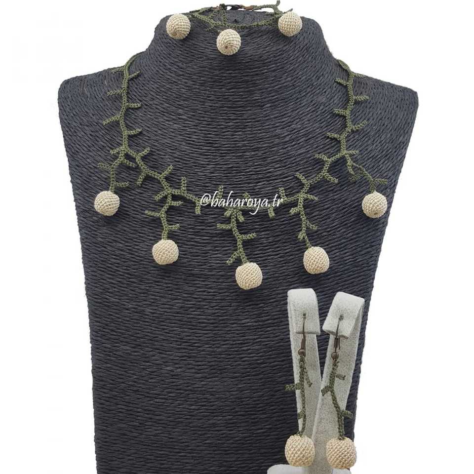 "Chic Cream Fashion Jewelry Set Necklace Earrings Bracelet with Needle Lace Detail"