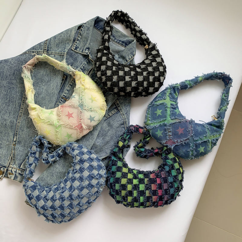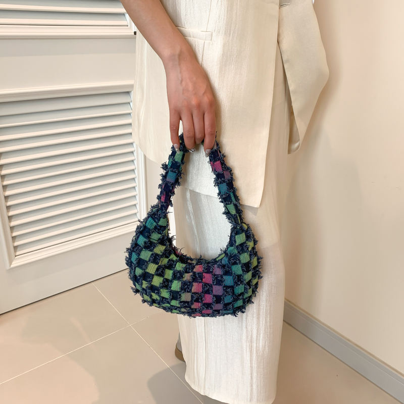 brand name:Fluffy Womens Half Moon Plaid Dumpling Bag