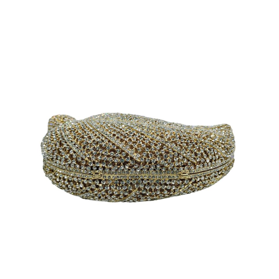 Chic Crystal Handbag for Women Classic and Fashionable Leaf Shape Clutch Bag with Diamond Rhinestone for Wedding Party or Prom