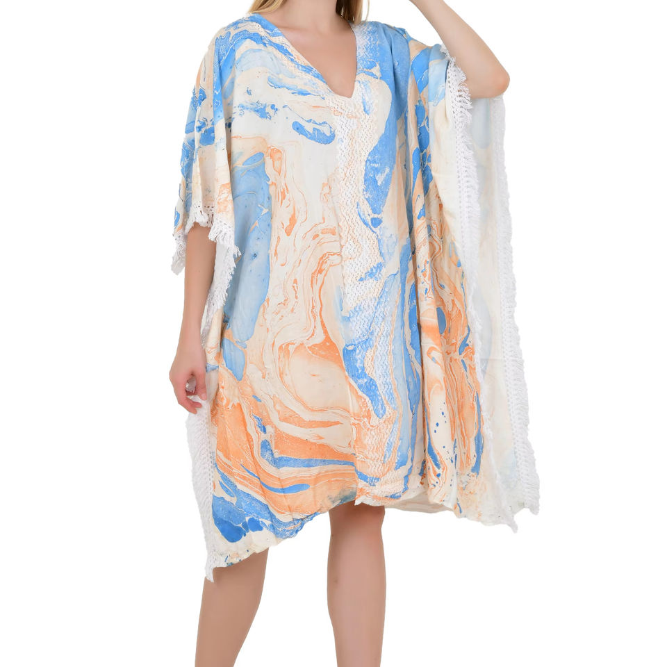 Chic Flowing Party Kaftan Vacation Wear Women Kaftan Caftan Lace Bikini Beach T Shirt Type Cover up Free Size Dress Multi Color