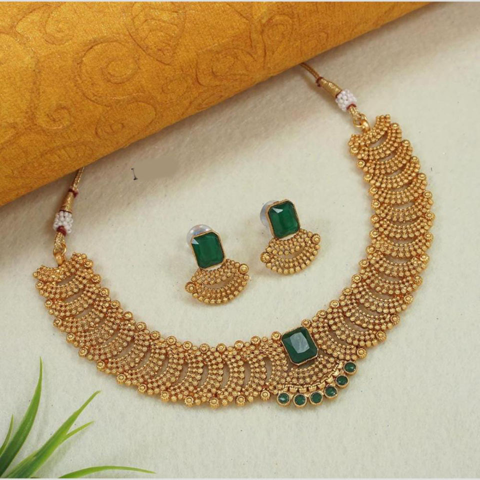 Chic Gold Plated Choker Necklace Set for Women With Sparkling Pota Stones Traditional Meets Trendy for Every Occasion