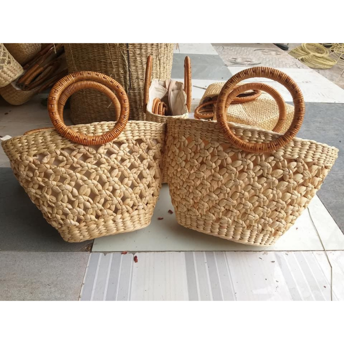 Chic Handmade Straw Tassel Casual Tote Bag with Chains and Two Handles Low Price Wholesale Beach Handbag for Women Summer
