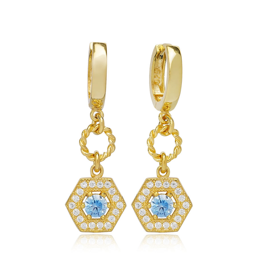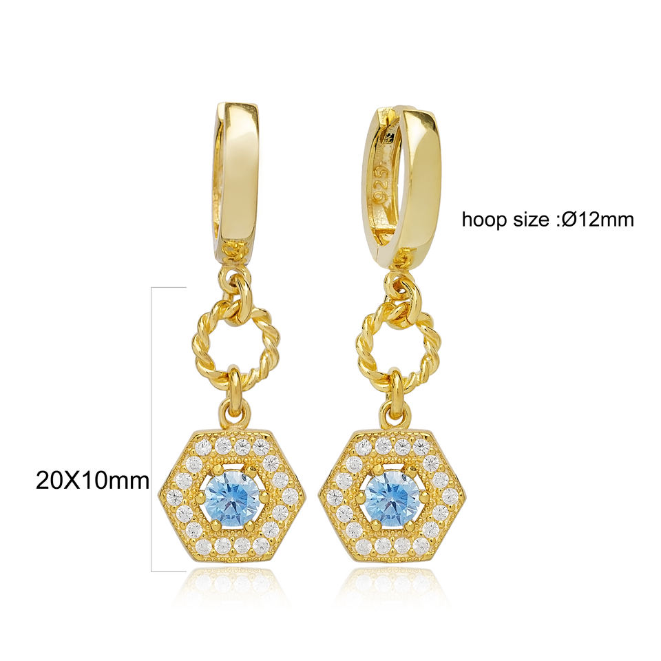 Chic Hexagon Shape Aquamarine Stone Dangle Earrings Turkish Wholesale 925 Sterling Silver Jewelry