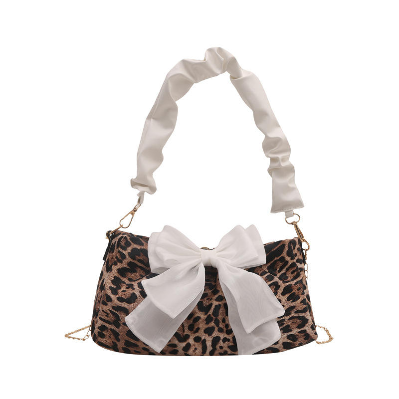 Chic Large Capacity Leopard Print Shoulder Bag with Elegant White Bow - Golden Chain Strap, for Everyday Use & Parties