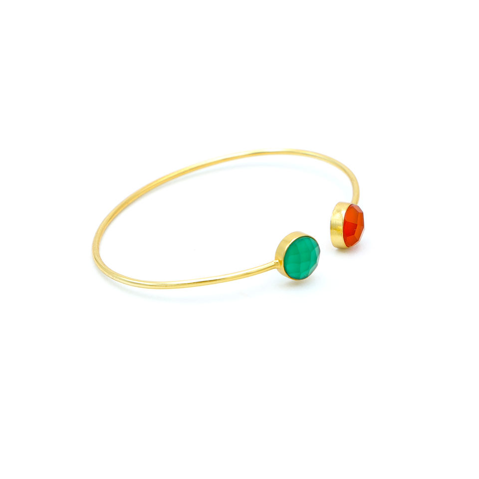 Chic Multicolor Gold-Plated Adjustable Cuff Bangle Bracelet Dua Blue Carnelian Chalcedony 18K Trendy Style Wedding Jewelry Brass