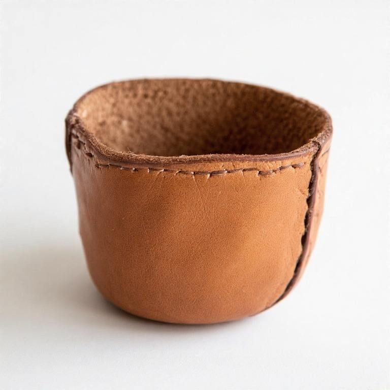 Chic Small Leather Planter With Warm Rustic Finish For Effortless Botanical Styling In Minimalist Or Natural Interiors