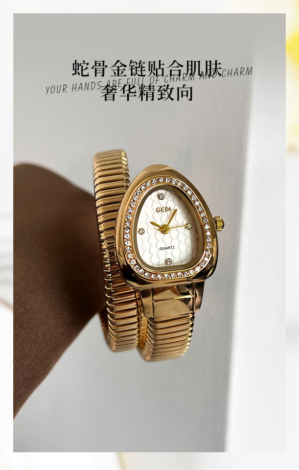 Chic Snake Head Ladies Watch Retro-Inspired Gold Tone Sparkling Quartz Timepie