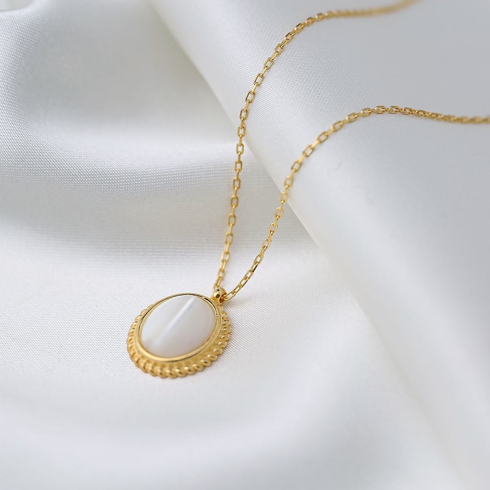 Chic Style Mother of Pearl Stone Oval Shape Charm Necklace Pendant Turkish 925 Sterling Silver Jewelry