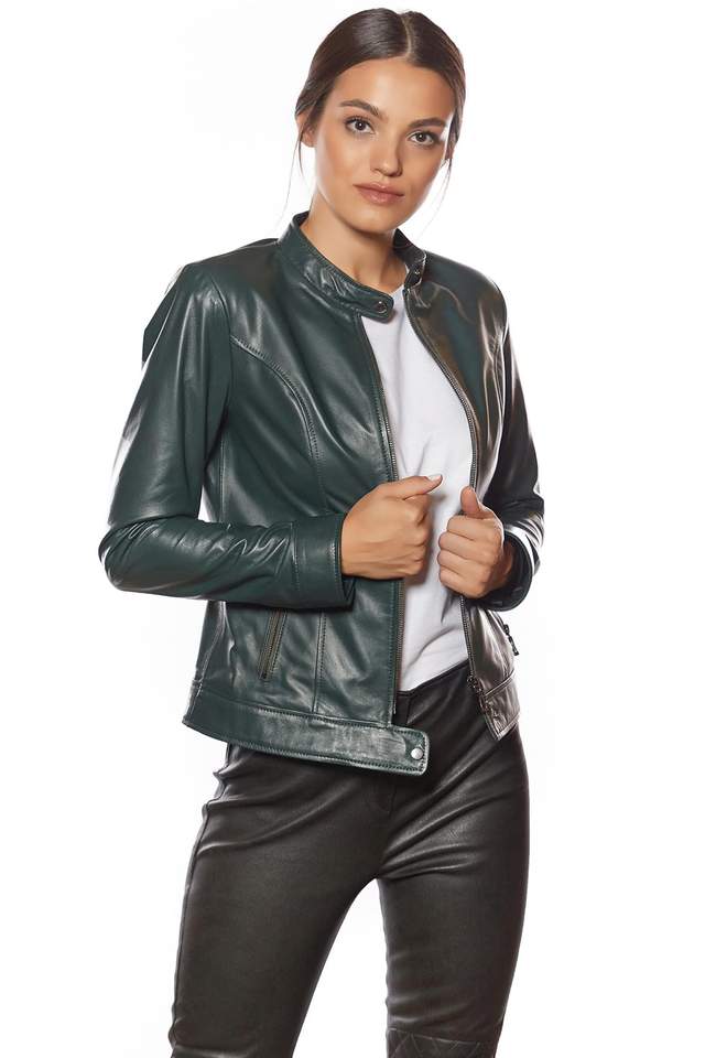 Chic Vegan Leather Biker Jacket for Women Stylish Faux Leather Moto Jacket with Zipper Detailing Trendy Outerwear for Her