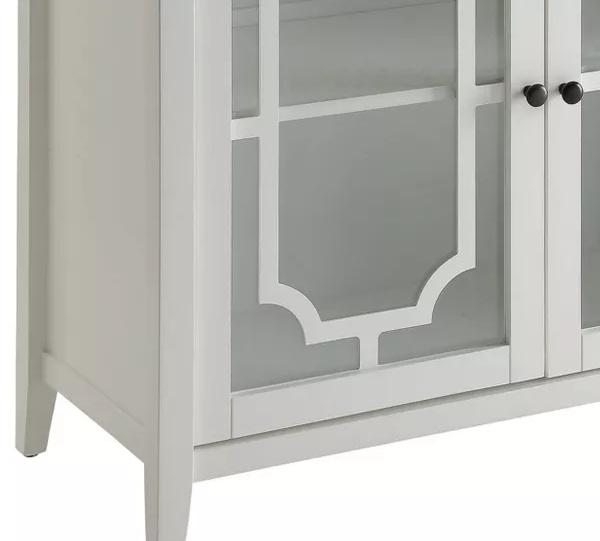 Chic White Glass Door Cabinet with Geometric Design Elegant Storage for Living Room or Office Stylish and Functional